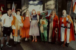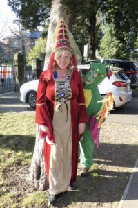 Adding a fun and theatrical twist, Lions members brought the story of St George to life. Elaine Morgan starred as the Dragon, while John Morgan took on the role of St George.