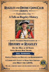 Celebrate Staffordshire Day with a Journey Through Rugeley’s History Rugeley & District Lions Club are marking Staffordshire Day with a special event that shines a spotlight on the rich heritage of our town. On Friday 1st May 2026, the Rugeley Rose Theatre will host an engaging presentation by Historian Jonathan Oates of Jono’s Tourism, well‑known for his lively, detail‑packed talks. Oates will guide audiences through Rugeley’s fascinating past, uncovering stories, characters, and moments that have shaped the community we know today. Whether you’re a lifelong resident or new to the area, it’s a chance to discover something new about the place you call home.